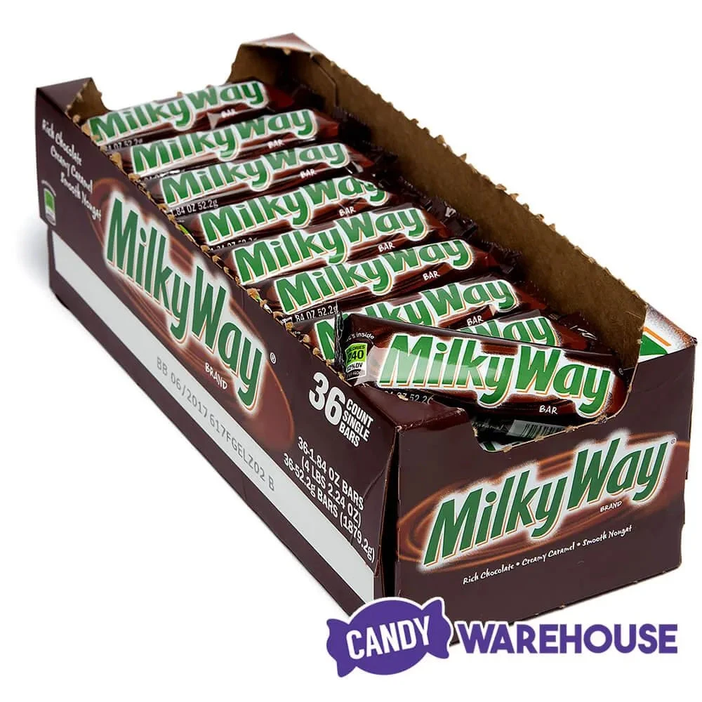 Box contains 36 galactic Milk Way Candy Bars.